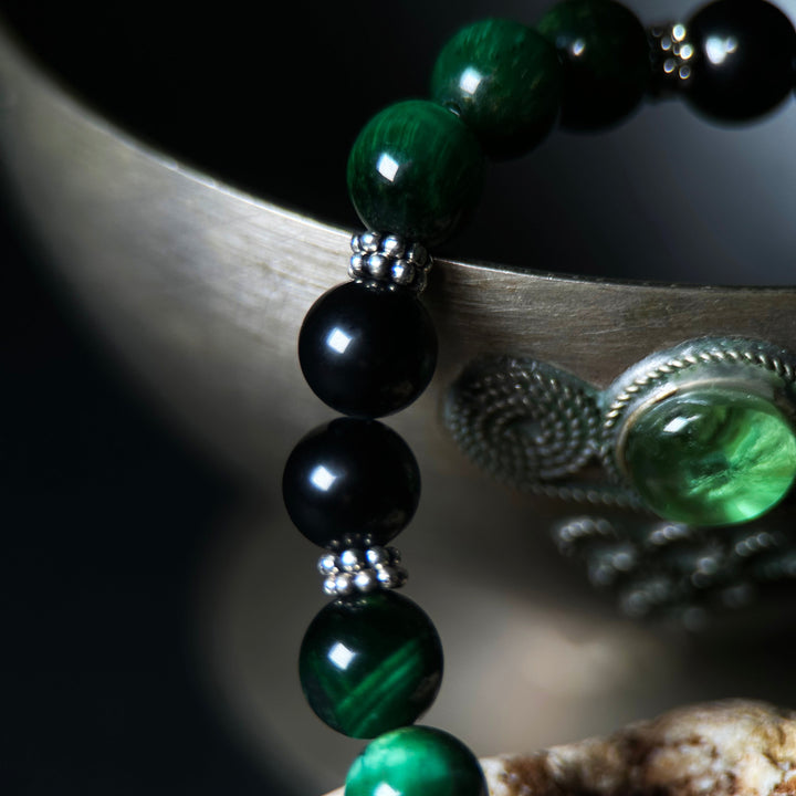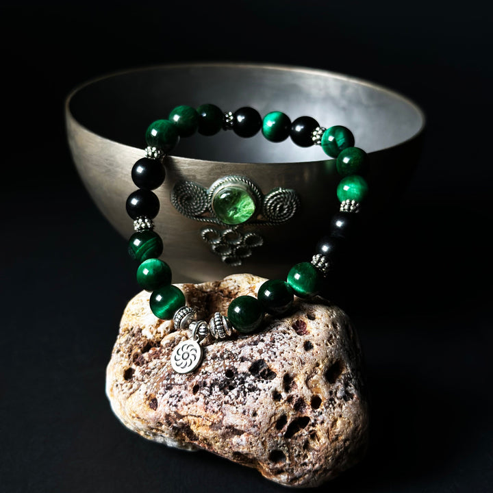 💚🖤 ვეფხვის თვალის მალაქიტისა და შპინელის ენერგიული ჰარმონია — ტრანსფორმაცია და დაცვა ერთ სამაჯურში!